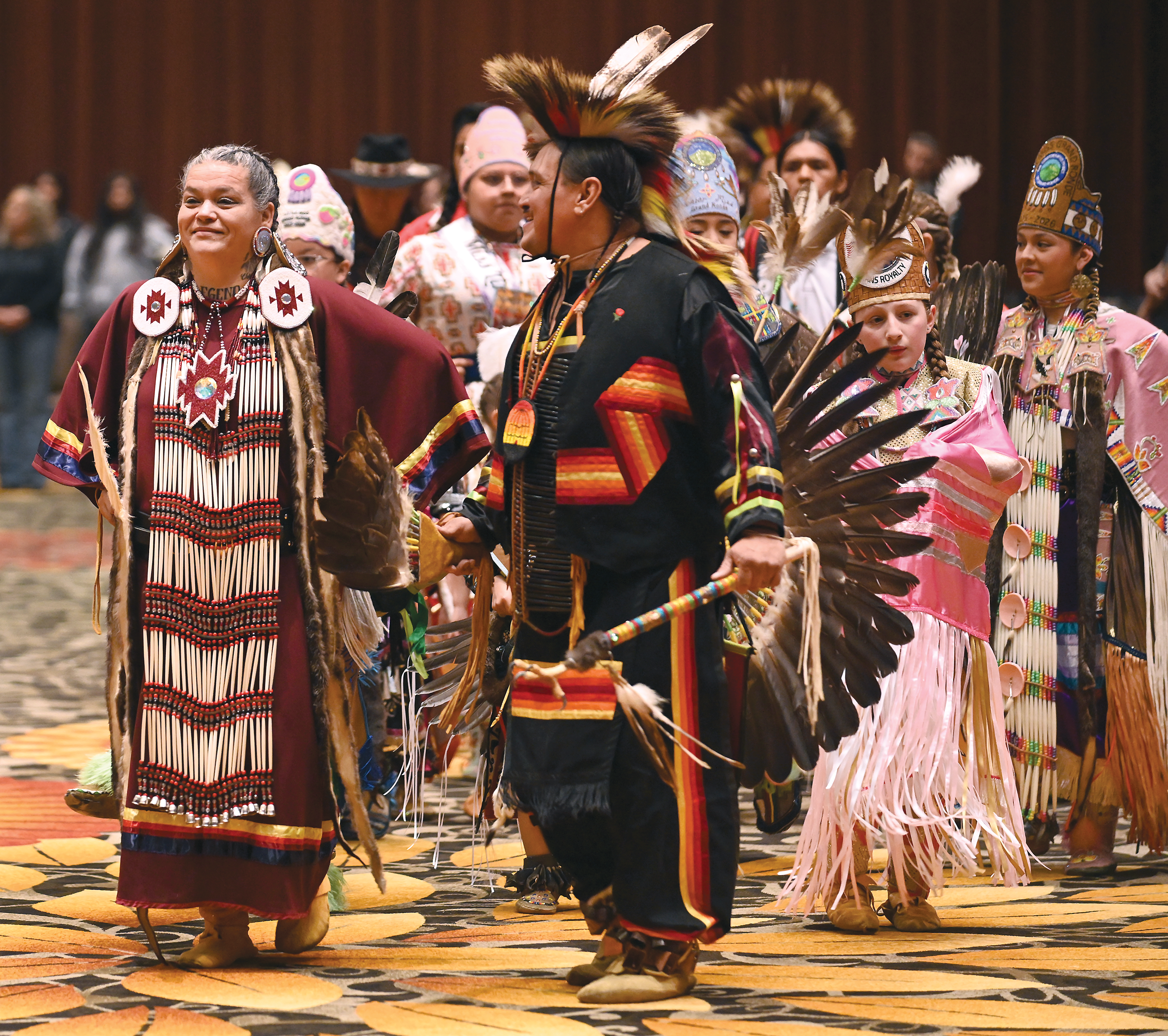 Dance specials included golden age by the Elders Activity Center, Marion Mercier Fancy Shawl by Adult Education, tiny tots by Tribal Council, all-in-all by the Health & Wellness Center and Ampkwa Advocacy Red Regalia for all ages. There was also a fill-the-blanket dance, an owl dance, and a head man/woman special potato dance for all ages. Coming out/returning to the circle was performed at 10 a.m. Youth Empowerment & Prevention put on a “street style” dance special for ages 14 to 24, with one song and three winners who each received a $500 budget to either start or add to their regalia.