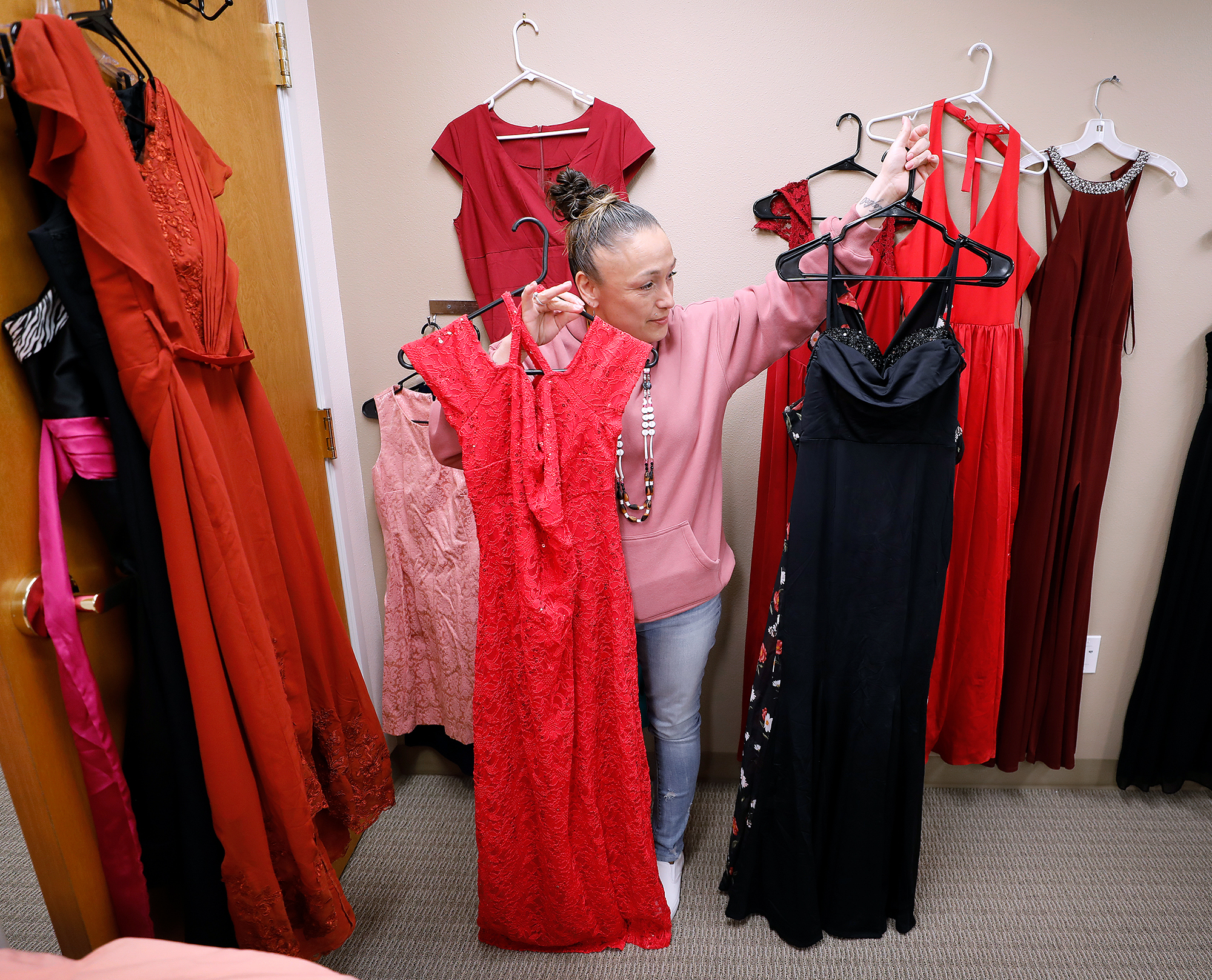The room in the Tribe’s Behavioral Health Department has been transformed into a prom closet, that Tribal Peer Support Supervisor Sydney Clark said is being created “to ensure that every youth has the opportunity to feel confident and celebrated on their special night.”